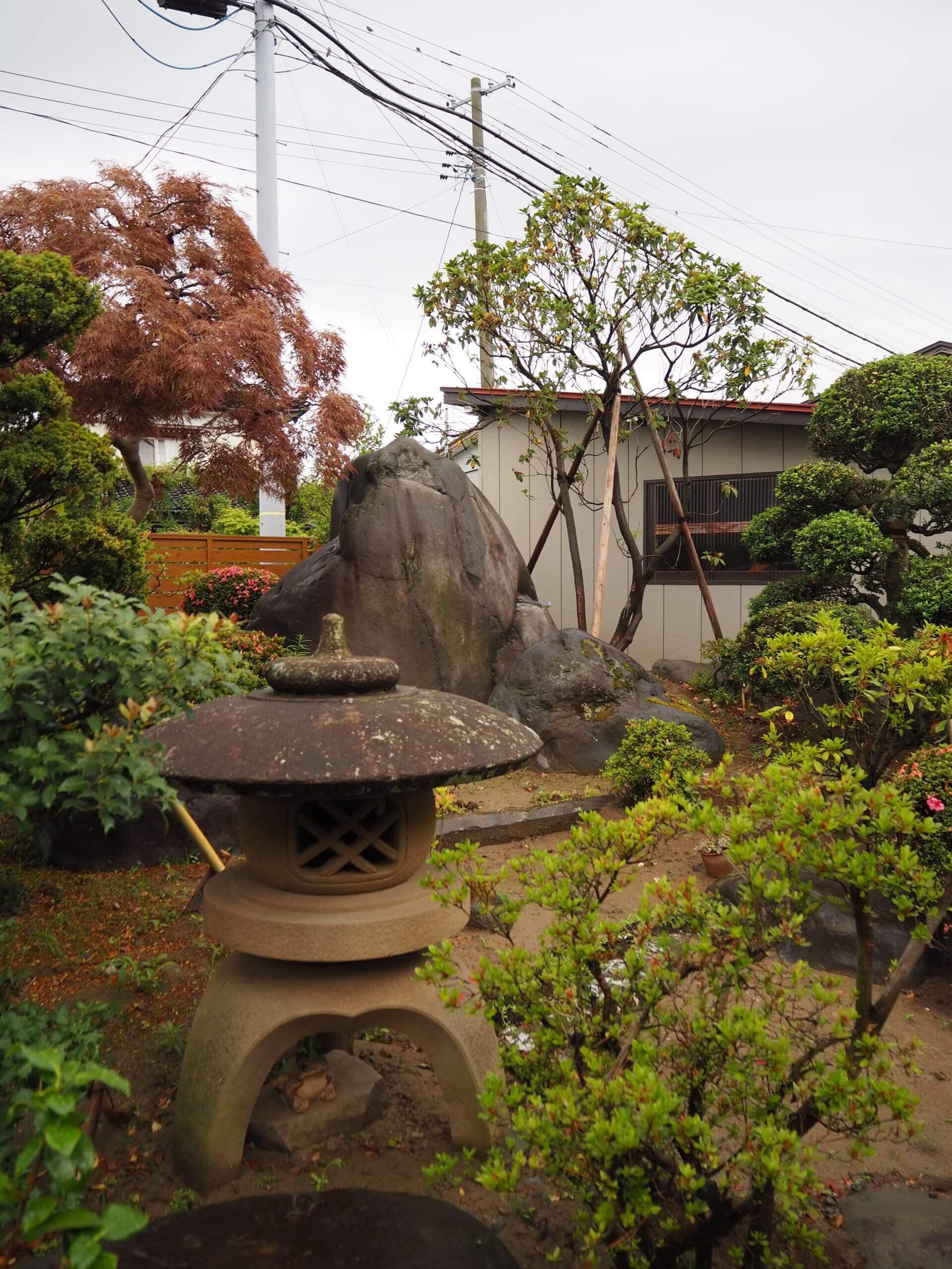 景石が傾いたことをきっかけに整備を実施しました。山岳を思わせるような約10トンある立派な立石を修正、その存在感を活かすよう紅シダレモミジを植えたほか、既存の樹木も移植して石灯籠も配置して、より奥行を感じるさせるよう整えました。